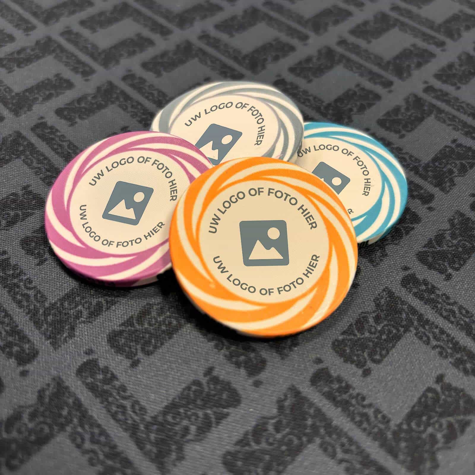 Our custom poker chips are made of high-quality ceramic material, giving them the playing experience of a real casino. Designing your own unique poker chips is easy and quick with the step-by-step process below. Fill out all the sections and start creating your unique custom poker chips today, designed specifically for your playing style and personal preferences. Unleash your creativity and soon experience poker nights full of excitement and fun with your own personalized poker chips.