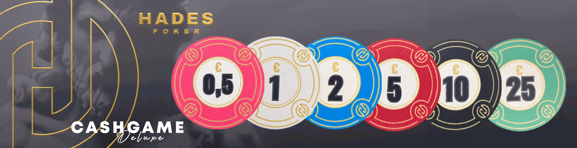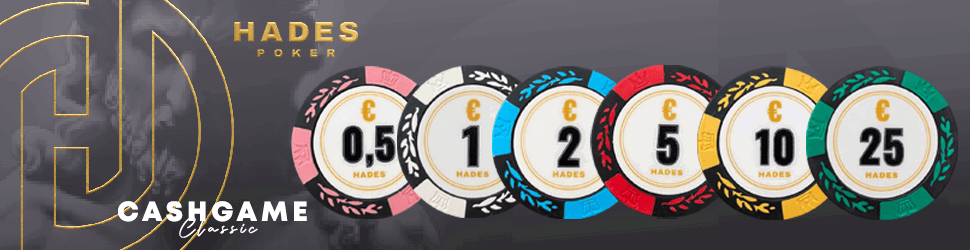 The Cashgame Classic is a chipset featuring clay composite chips with a metal interior. At 14 grams each, these are Hades' heaviest chips. The distinctive colors of the chips make them easy to distinguish from each other. In addition, the values are designed large to minimize the chance of confusion. The cash game classic offers values from €0.50 to €1000, and is available in different compositions.