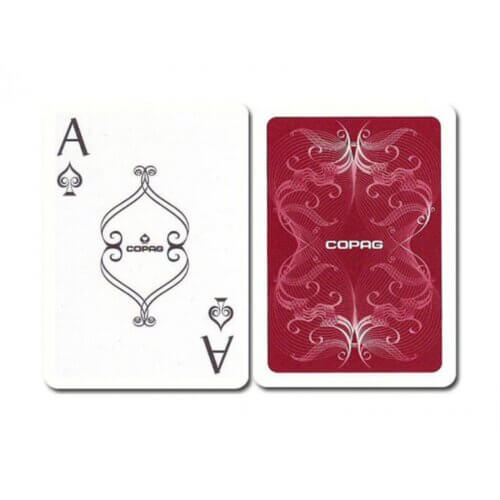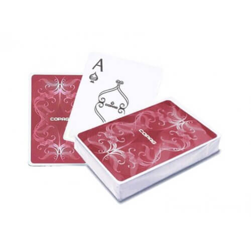These exclusive Copag Centennial poker cards are very sophisticated. The 100% PVC plastic poker cards come in a luxury storage box. The cards feature a beautiful design and the cards have a luxury jumbo 2 index. The backs of these cards look fairy-tale like and are made of red and blau. A beautiful set of poker cards for the real poker lover.
