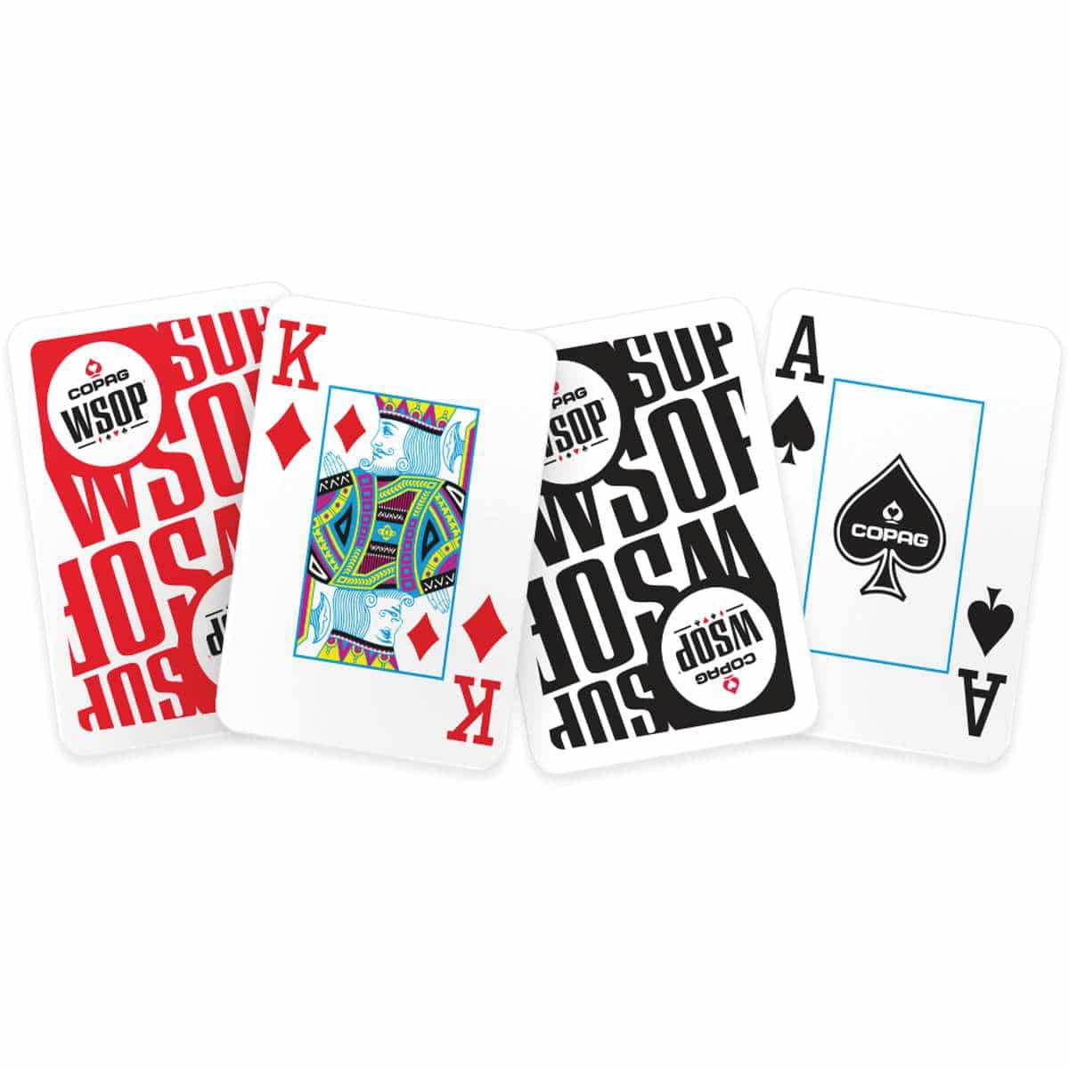 The COPAG WSOP playing cards are the official poker playing cards of the World Series of Poker and these are the same playing cards used in Las Vegas during all World Series of Poker events.