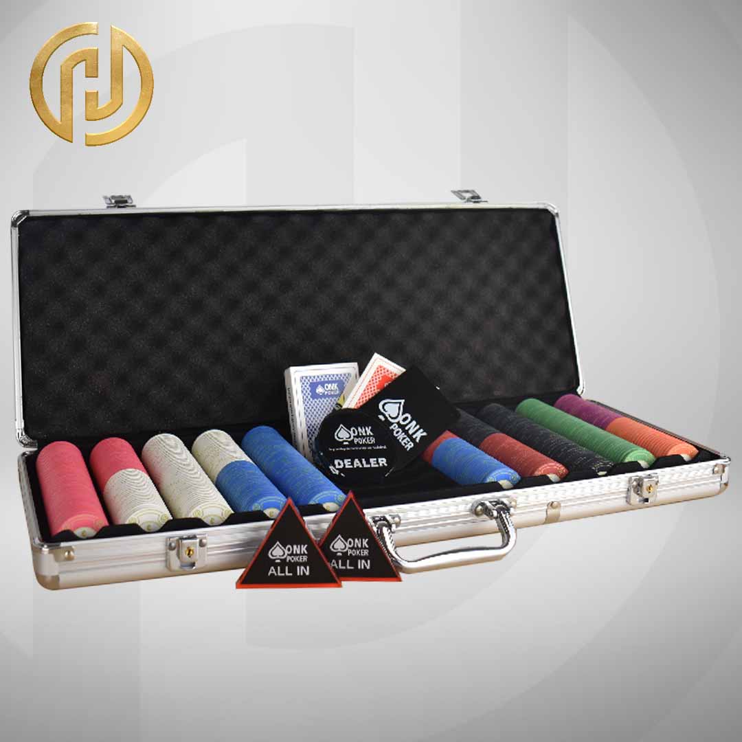 The set consists of 500 high-quality ceramic composite chips in a stylish gold Hades design, specially formulated for cash games. These chips have an authentic casino feel and feature clear values for clear game play. The use of clay composite material provides a comfortable weight, firm grip and the distinctive sound of professional chips.