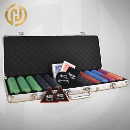 The set consists of 500 ceramic composite poker chips in an exclusive Hades Tournament design. These chips feature clear tournament values and are known for their pleasant weight, grip and authentic sound. The clay composite material used offers a realistic playing experience similar to that in a real casino.