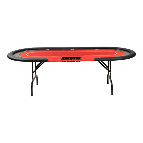 The MEC Cashgame XL Poker Table is the largest model in the Cashgame series and specially designed for the most demanding poker enthusiasts. With a generous length of 243 cm, a width of 105 cm and a standard height of 76 cm, this table offers comfort and space for up to 10 players plus one dealer. The table top is finished with high-quality Speedcloth, which guarantees a professional gaming experience due to the smooth card movements and excellent durability.
