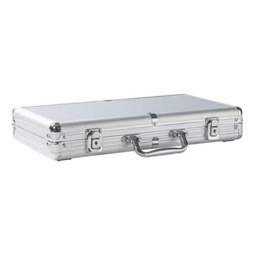 Everything is delivered in a sturdy and elegant aluminum case. The padded interior ensures that the chips and accessories are safely stored. The sturdy construction and the practical handle also make this case easy to transport, ideal for poker sessions at different locations.
