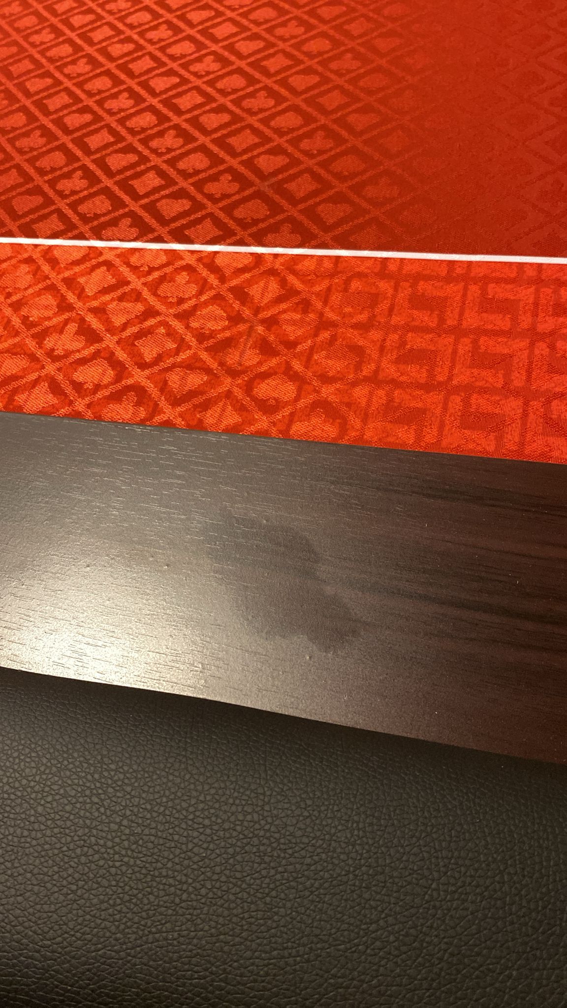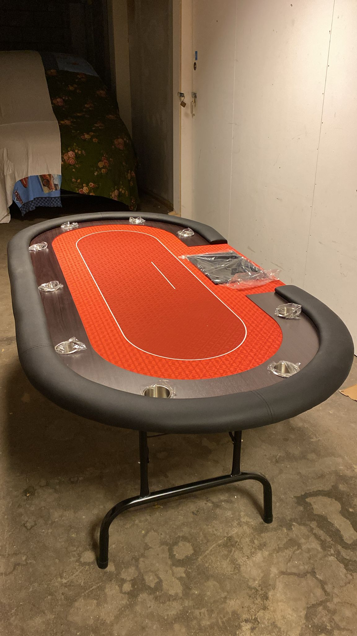Poker table Cashgame red - 2nd Chance. This red poker table has use damage: namely, there is damage to the wood. Otherwise complete and still usable. Ideal for those looking for a bargain deal or want to refurbish the table.