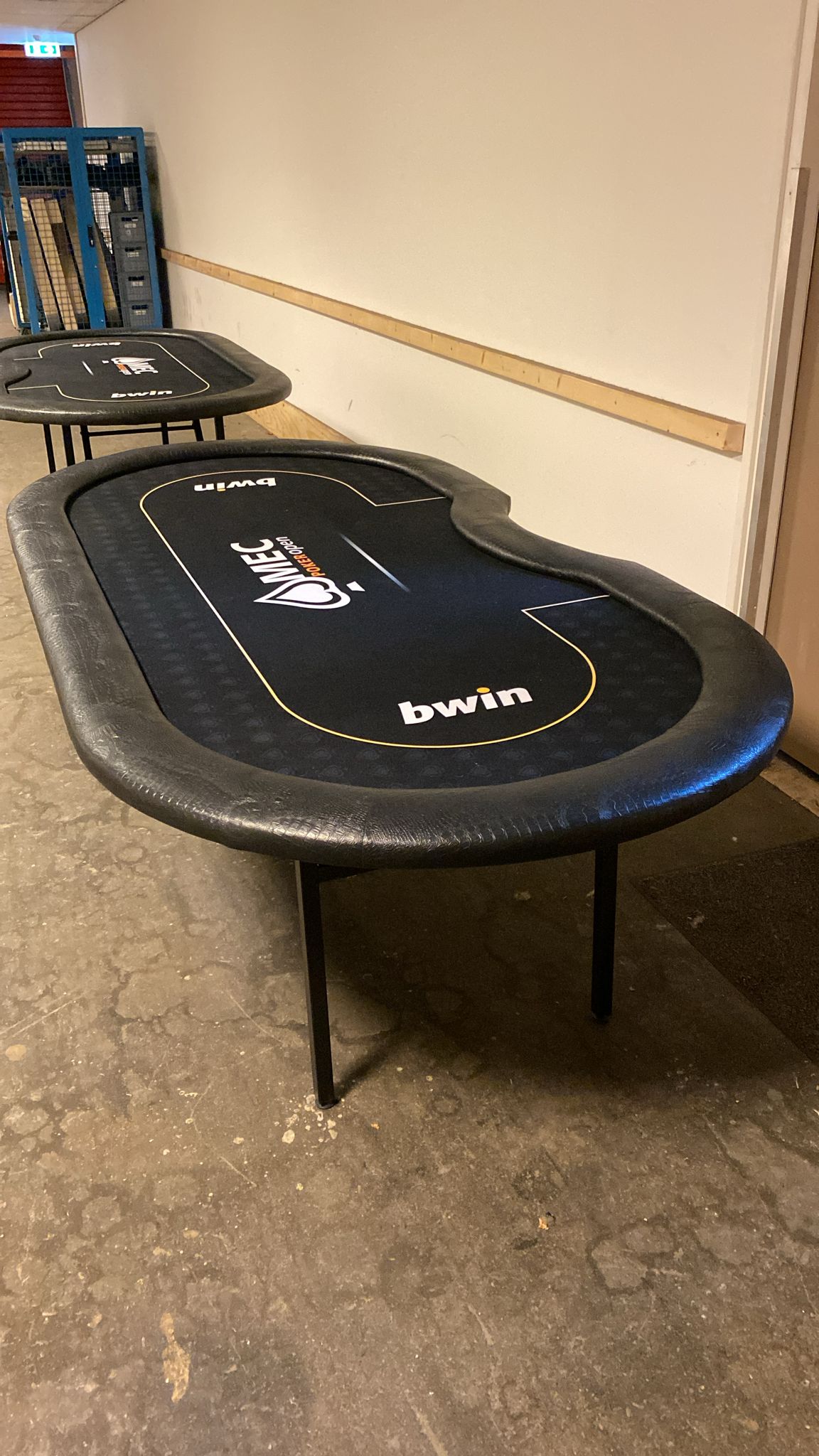 Bwin Poker Table black Basic - 2nd Chance. This table has obvious defects: the center has sagged and the riser is damaged. As a result, it is on offer a lot cheaper. Still usable, but especially suitable for those looking for a sharp deal or handy with repairs.