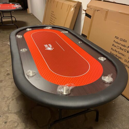 ONK Poker Poker Table red - 2nd Chance. This red poker table has use damage: there is damage namely to the wood. Otherwise complete and still usable. Ideal for those looking for a bargain deal or want to refurbish the table.