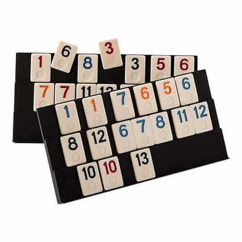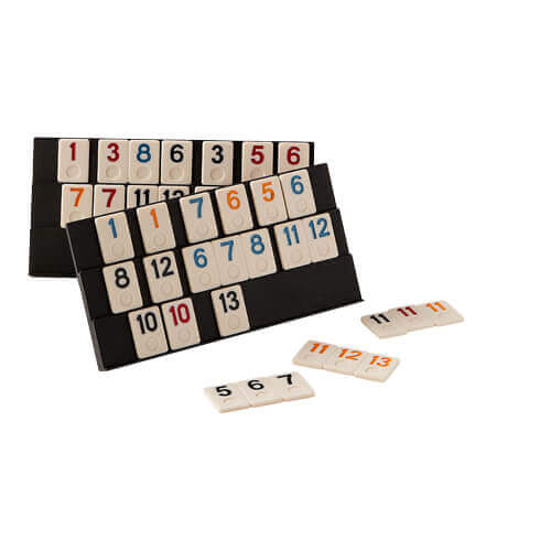 Rummy is a tactical game, where puzzling and arithmetic are central. By puzzling with the numbers and colors, sequences must be created. These sequences can consist of the same numbers, or rows of numbers of the same color. It is the same as the well-known game Rummicub.