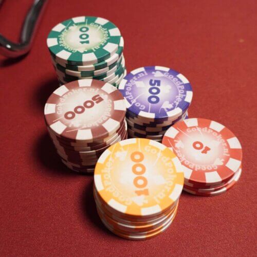 These poker chips from goodpoker are pre-owned, but because they are fully ceramic they are still in excellent condition for playing poker. The chips have a full color design with colors that stand out well from each other. In addition, the chips have values that lend themselves to playing a tournament or sit & go.
