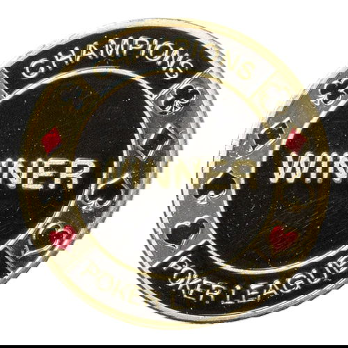 A card protector with 'winner' and 'Champions Poker League' on the front.